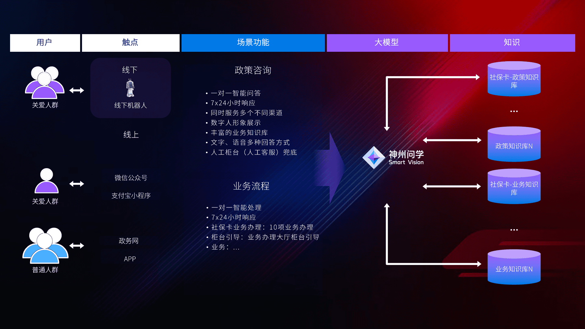 在服务大厅部署客服机器人,,在线上应用和小程序配置客服数字人,,724小时为群众解答常规问题,,客服机器人无法处理的,,转现场人工处理。。。